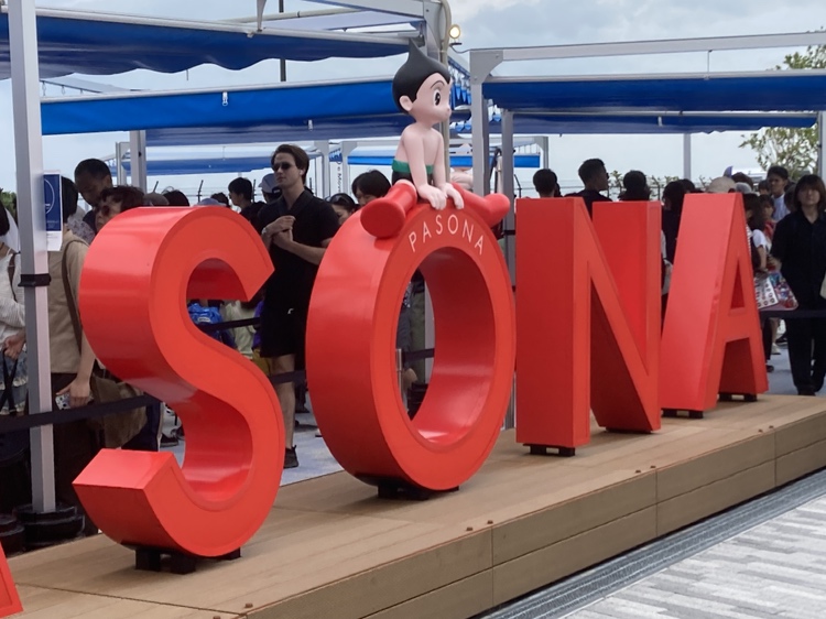 また、今回の研修では、私たちラボリが製作を担当させていただいた「PASONA」のモニュメント文字やイタリア大使館で使用されたチャンネル文字も現地で見ることができました。
