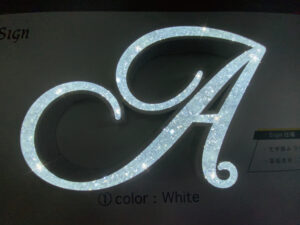 正面発光の一種で、文字の正面を透明感のあるダイヤモンドのようなカットしている形状のアクリル素材で覆い、内部のLED照明によって正面から光がクリスタルのようにキラキラ輝いて見え発光するチャンネル文字です。
