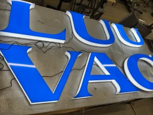 実は箱文字はチャンネル文字の種類の一つで看板やサインで使用される立体的な文字です。中が空洞になった構造が箱文字の特徴です。名前の通り、文字自体が「箱」のような形状をしており、文字全体に立体感を持たせることができます。